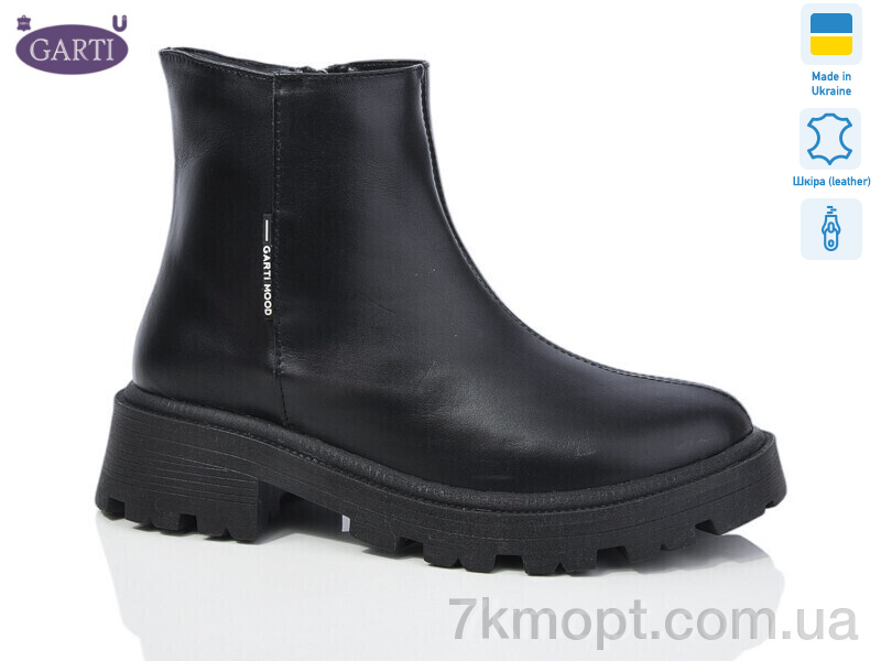 Ботинки Garti 346 чорна шкіра хутро