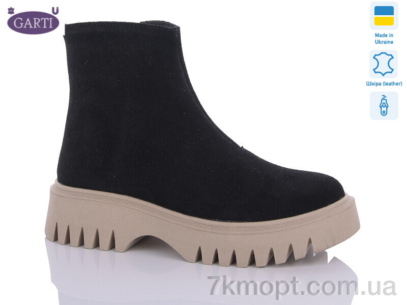 Ботинки Garti 6722 чорний замш беж байка