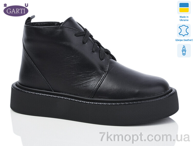 Ботинки Garti 293 чорна шкіра байка